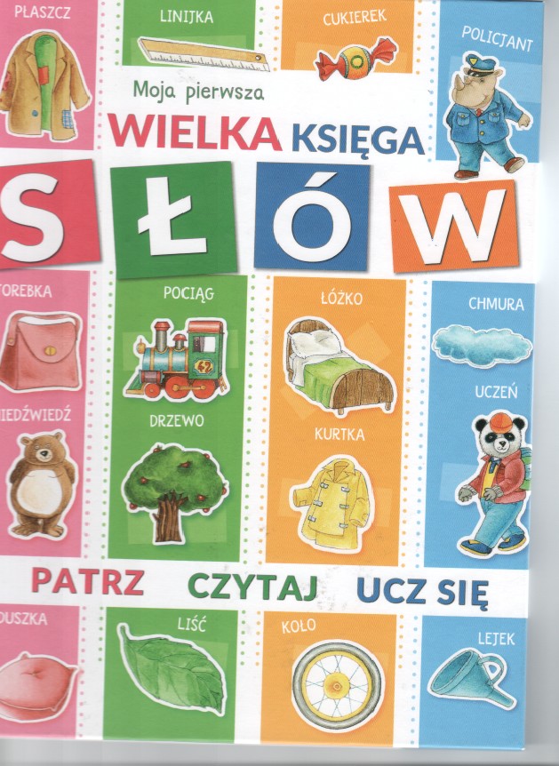 Moja pierwsza wielka księga słów. - Ożarów Mazowiecki : Firma Księgarska Olesiejuk, [2019]. - 96 stron : ilustracje kolorowe, 29 cm.